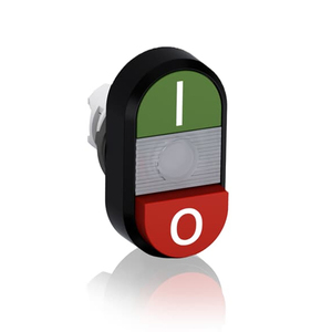 Кнопка двойная MPD13-11С (зеленая/красная-выступающая) прозрачная линза с текстом (I/O)