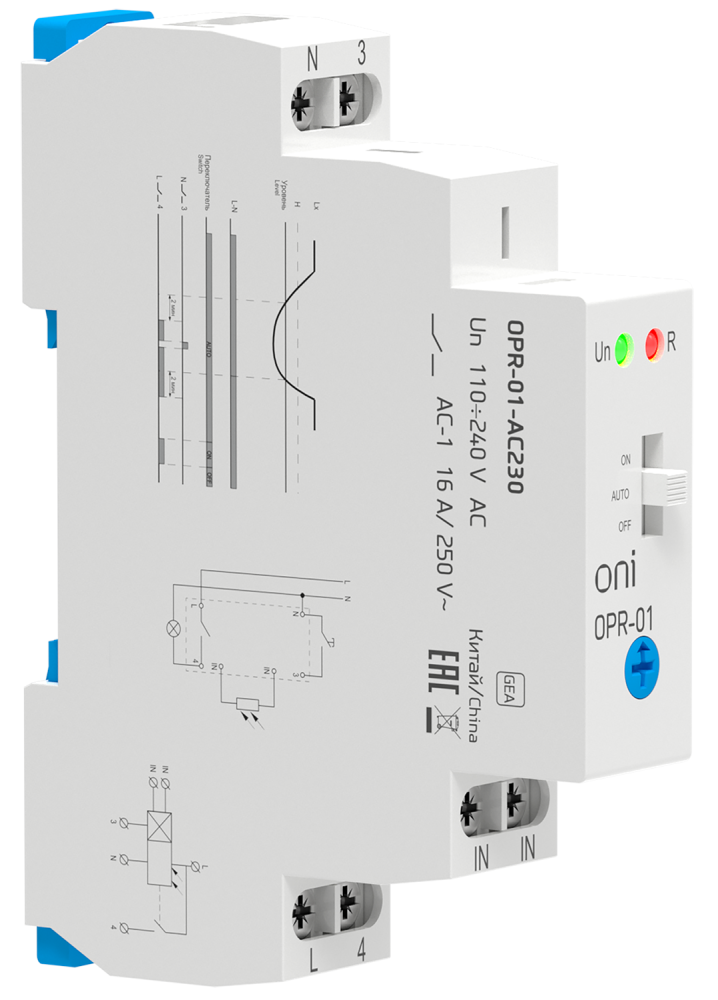 Фотореле типа OPR предназначены для автоматического контроля (включения или отключения) освещения в зависимости от уровня освещенности. Включение – при снижении освещенности (сумерки) и отключение – при увеличении освещенности (рассвет). Порог срабатывания может быть изменен с помощью регулятора на передней панели. Датчик освещенности входит в комплект.