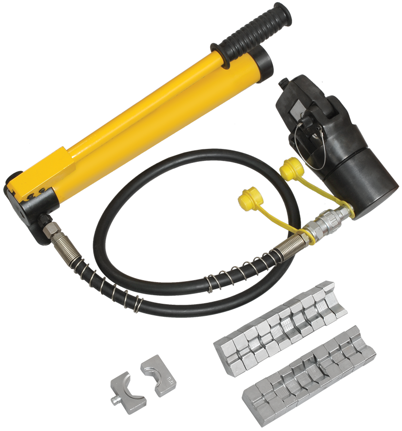 Гидравлические прессы позволяют создавать механические соединения типа кабельная жила-гильза или кабельная жила-наконечник с помощью механической опрессовки. Прессы снабжены сменными матрицами, предназначенными для различных сечений жил.