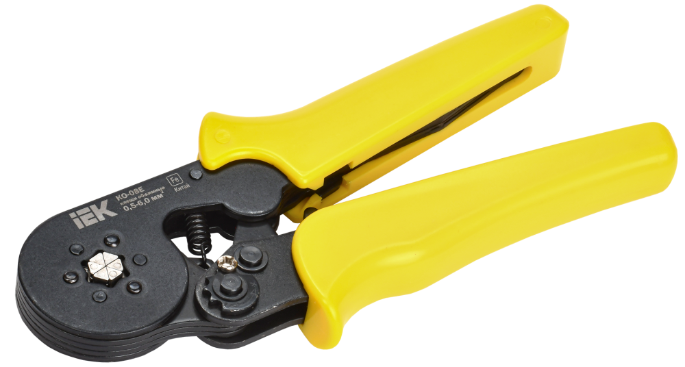 Клещи обжимные КО-08E имеют гексагональный профиль обжима и предназначены для опрессовки наконечников-гильз Е, НГИ2 и НГ сечением от 0,5 до 6,0 мм2. Клещи, изготовленные из 3-мм закаленной стали, имеют храповой механизм, удобные ручки, точно саморегулирующуюся матрицу, а также оборудованы специальным приспособлением, позволяющим разблокировать их из любого положения. Эргономичный дизайн, небольшие размеры и вес, простота и надежность в обращении делают работу с этими клещами не только быстрой и удобной, но и приятной.