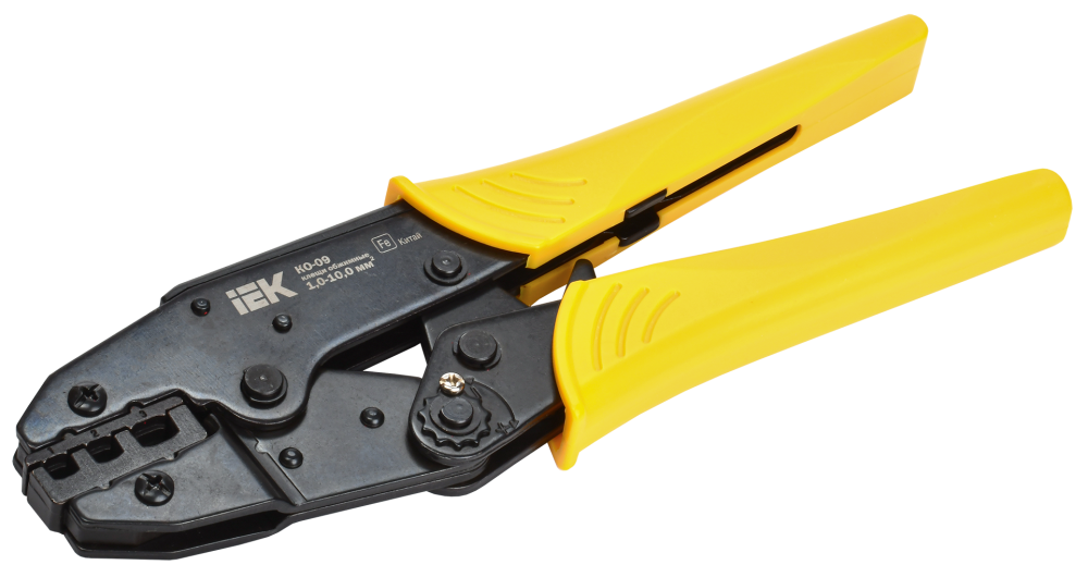 Клещи обжимные КО-09 предназначены для опрессовки различных видов и размеров изолированных наконечников, таких как НВИ-т, НКИ-т, Рпип-т, Рпим-т, ГСИ-т, кроме типа 2, а также изолированных концевых заглушек КИЗ. Клещи, изготовленные из 3-мм закаленной стали, имеют храповой механизм, а также оборудованы специальным приспособлением, позволяющим разблокировать их из любого положения.