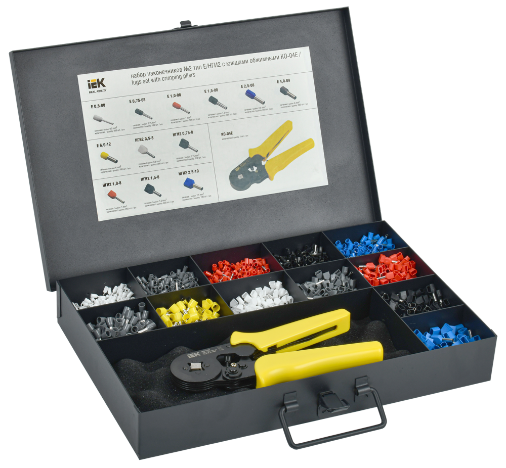 Наконечники НШВИ предназначены для оконцевания проводов и подключения их к контактным зажимам различного электрооборудования.В набор входят популярные типоразмеры, которые упакованы в прочный металлический кейс, включающий клещи обжимные КО-04.