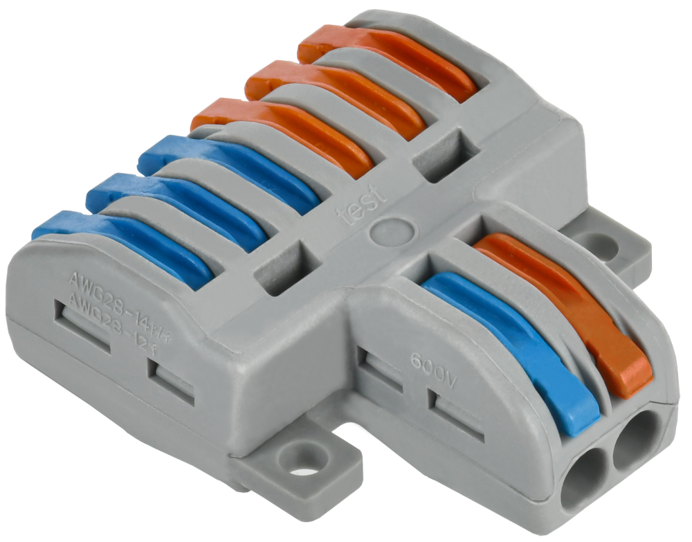 Клемма строительно-монтажная проходная разветвительная серии 222 предназначена для соединения одножильных и многожильных медных проводников без использования инструмента в электрических сетях переменного и постоянного тока. Клемма допускает многократное присоединение и отсоединение проводников. Количество подключаемых проводников - 2/6.