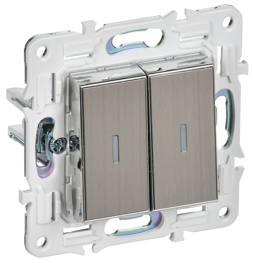 Выключатели серии SKANDY изготовлены из металла, фактура глянцевый никель. Луженая контактная группа с серебряными контактными площадками обеспечивает надежную коммутацию. Мягкий щелчок механизма позволит эксплуатировать изделие с особенным удовольствием. Разнообразный ассортимент механизмов позволяет подобрать наиболее подходящее решение в управлении освещением. Самозажимные контакты облегчают установку. Выключатели с небесно-голубой подсветкой корректно работают с любыми светодиодными источниками света. Эргономичная конструкция и лаконичная форма обеспечивают комфортную эксплуатацию выключателя. Двойной изолированный суппорт с ласточкиным хвостом обеспечивает удобную установку в многопостовую рамку. Выбирайте идеальный оттенок для своего интерьера из 11 стильных цветовых решений. Уютная атмосфера и изысканный стиль. SKANDY – переключаться легко!