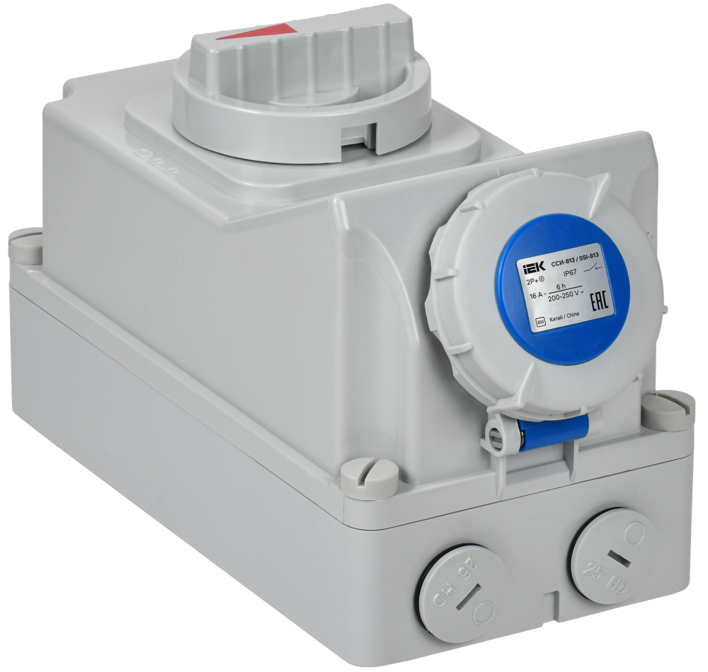 Розетка с механической блокировкой предназначена для организации точки электропитания повышенной безопасности. Имеет степень защиты IP67 и возможность для подключения в шлейф. Розетка подходит для электроснабжения паркингов, складских и промышленных помещений, подключения строительного электрооборудования и электроинструмента, станков, рефрижераторов и другого промышленного оборудования. Переключатель с механизмом блокировки на крышке розетки при наличии нагрузки предотвращает изъятие вилки, а при ее отсутствии не допускает подачу напряжения.