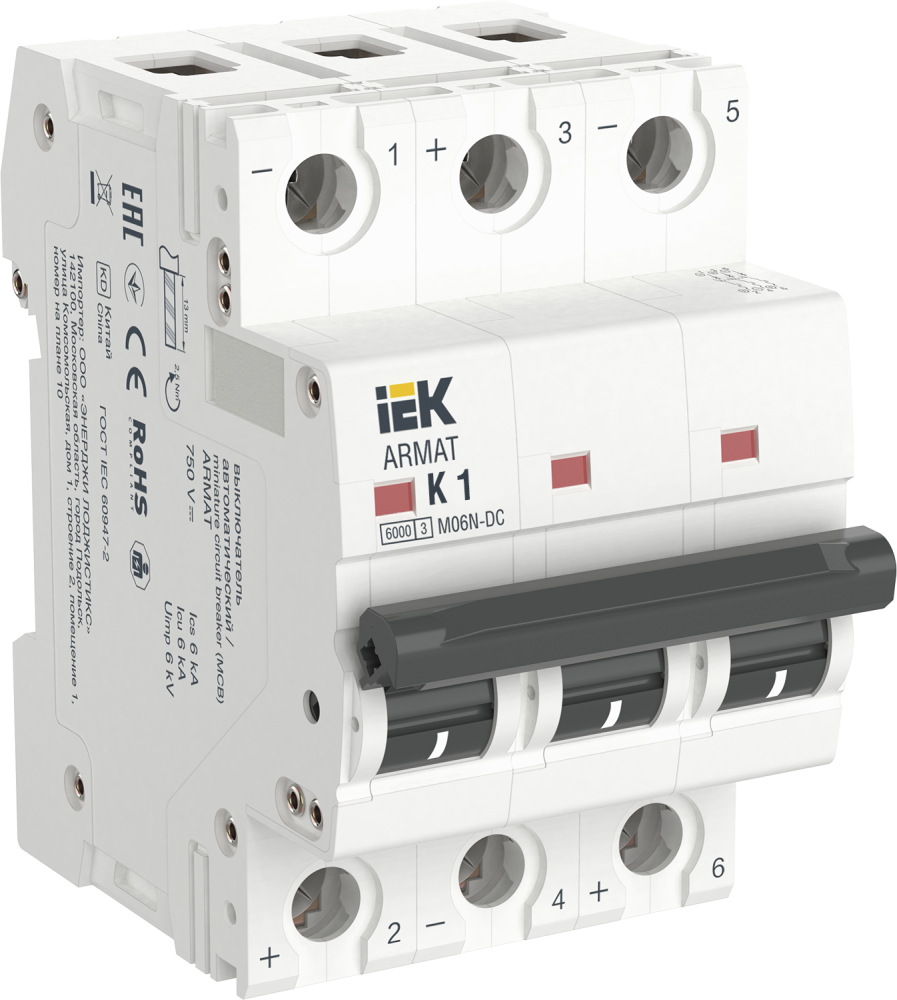 Автоматические выключатели ARMAT серии M06N-DC предназначены для коммутации электрических цепей постоянного тока с номинально рабочим напряжением до 1000 В. Защищают от токов короткого замыкания и перегрузки, а также выполняют функции управления и секционирования. Есть возможность подключения шинами PIN, FORK. В номенклатере насчитывается 160 типоисполнений на 16 номинальных токов от 0,5 до 63 А.