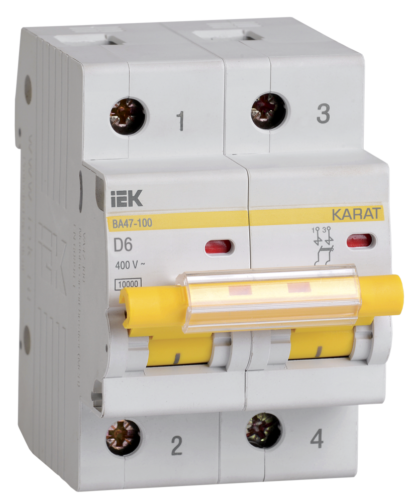 - Увеличенная коммутационная способность 10000А позволяет устанавливать ВА47-100 в качестве вводных автоматических выключателей.