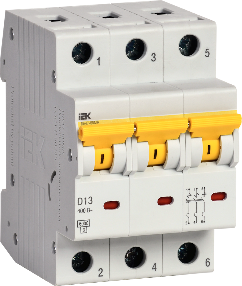 | Номин отключающая способность при коротком замыкании EN 60898 при 400 В, кА | 6.0 |