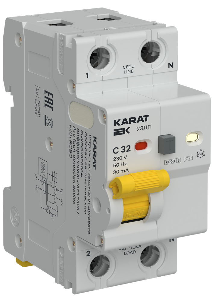 Устройство защиты от дугового пробоя УЗДП KARAT - инновационное решение для защиты от возгораний в электросетях. Используется для автоматизированного предупреждения пожара от опасного искрения в электрических сетях и электроустановках. УЗДП серии KARAT является третьим этапом защиты от пожара после автоматических выключателей, УЗО и АВДТ. Устройство способно обнаруживать неисправности, связанные с последовательной или параллельной дугой, и вовремя отключать линии, в которых выявлено искрение. Идеально подходит для использования в частных домах, офисных и муниципальных зданиях.