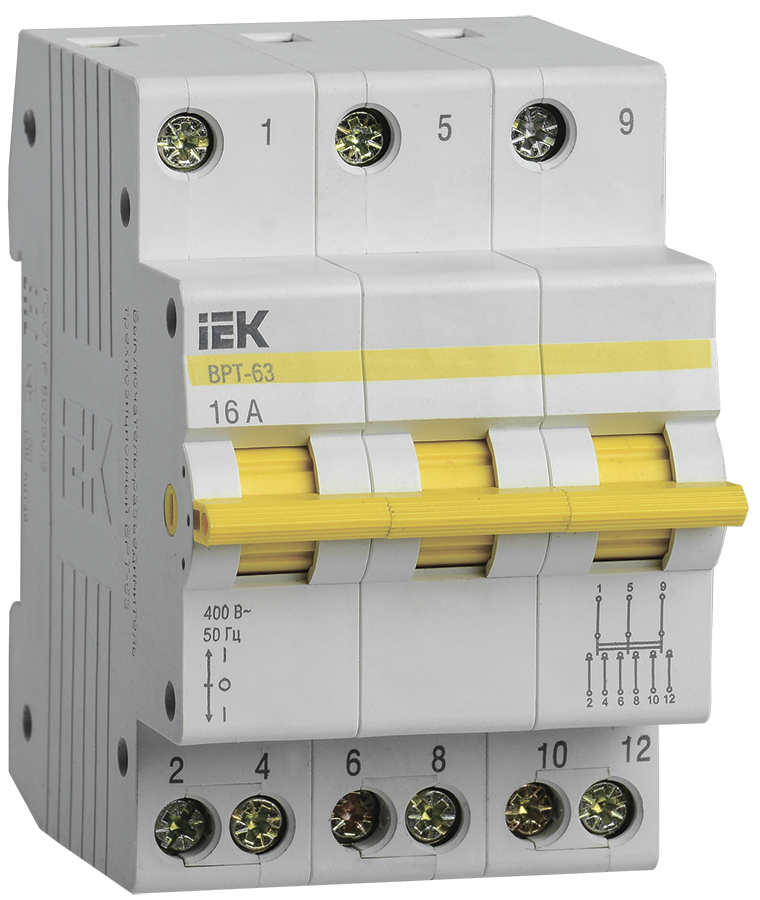 Выключатель-разъединитель трехпозиционный ВРТ-63 предназначен для коммутации смешанных активных и индуктивных нагрузок в цепях переменного тока напряжением до 400 В частотой 50 Гц. Применяется в качестве учетно-распределительного оборудования жилых и общественных зданий и сооружений, где предусматривается необходимость в оперативном отключении от сети отдельных групп электропотребителей или участков электрокоммуникации.