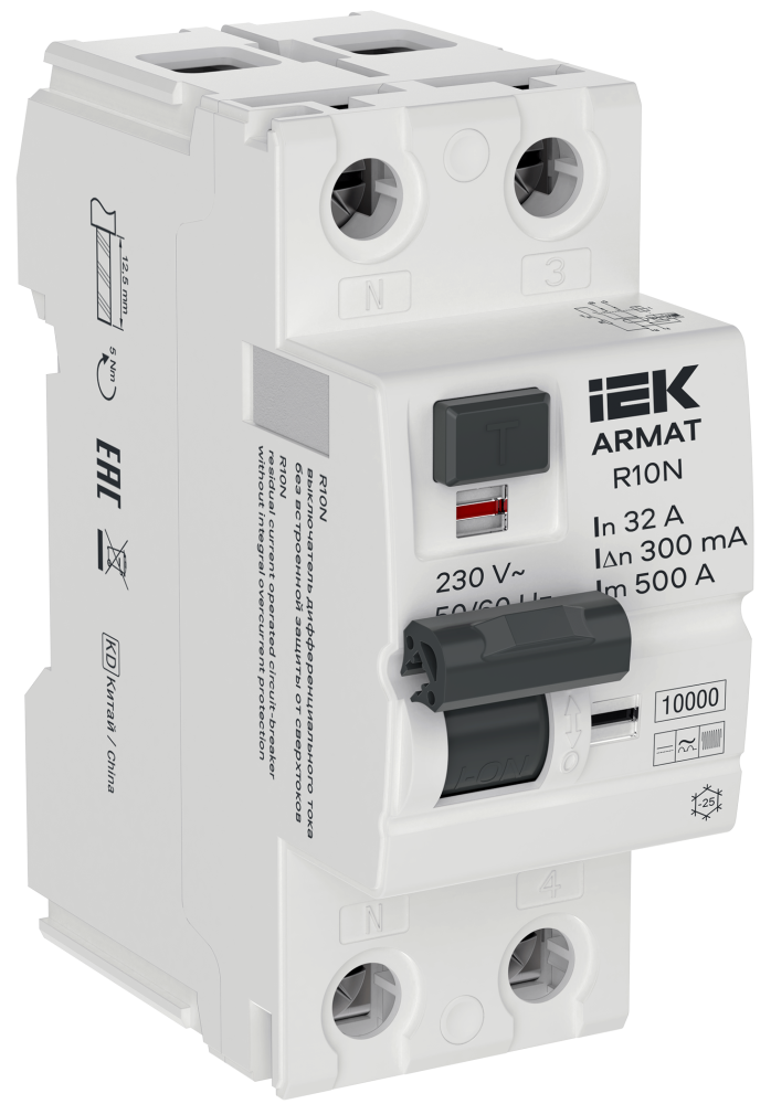 Выключатели дифференциального тока R10N типа B серии ARMAT предназначены для эксплуатации в однофазных или трёхфазных электрических сетях переменного тока напряжением до 400 В частотой 50/60 Гц. ВДТ типа В обеспечивают защиту от постоянной составляющей, переменной и пульсирующей составляющей и высокочастотной составляющей дифференциального тока. Дифференциальный ток с высокочастотной составляющей может возникать в оборудовании с преобразователями на полупроводниках. ВДТ с характеристиками срабатывания АС и А не могут обеспечить комплексную защиту в системах с преобразователями на полупроводниках, комплексная защита может быть обеспечена только с помощью ВДТ с характеристикой срабатывания типа В. Преобразователи на полупроводниках встречаются в медицинском оборудовании (различные виды томографов, рентгеновские аппараты и т.д.), зарядных станциях, фотоэлектрических преобразователях, источниках бесперебойного питания, преобразователях частоты.