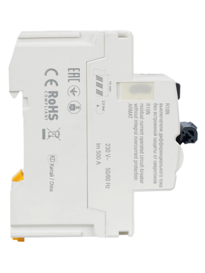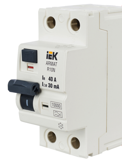 Выключатели дифференциального тока ARMAT серии R10N выполняют функцию защиты поражения человека электрическим током, а так же защиты от пожара при возникновении замыкания на землю. Модельный ряд включает в себя устройства с типами защитных характеристик по дифференциальному току AC, A, AC-S, A-S; номинальными токами от 25 до 100 А; номинальными дифференциальными токами срабатывания от 10 до 300мА. Условная отключающая способность ВДТ ARMAT серии R10N составляет 10 кА.