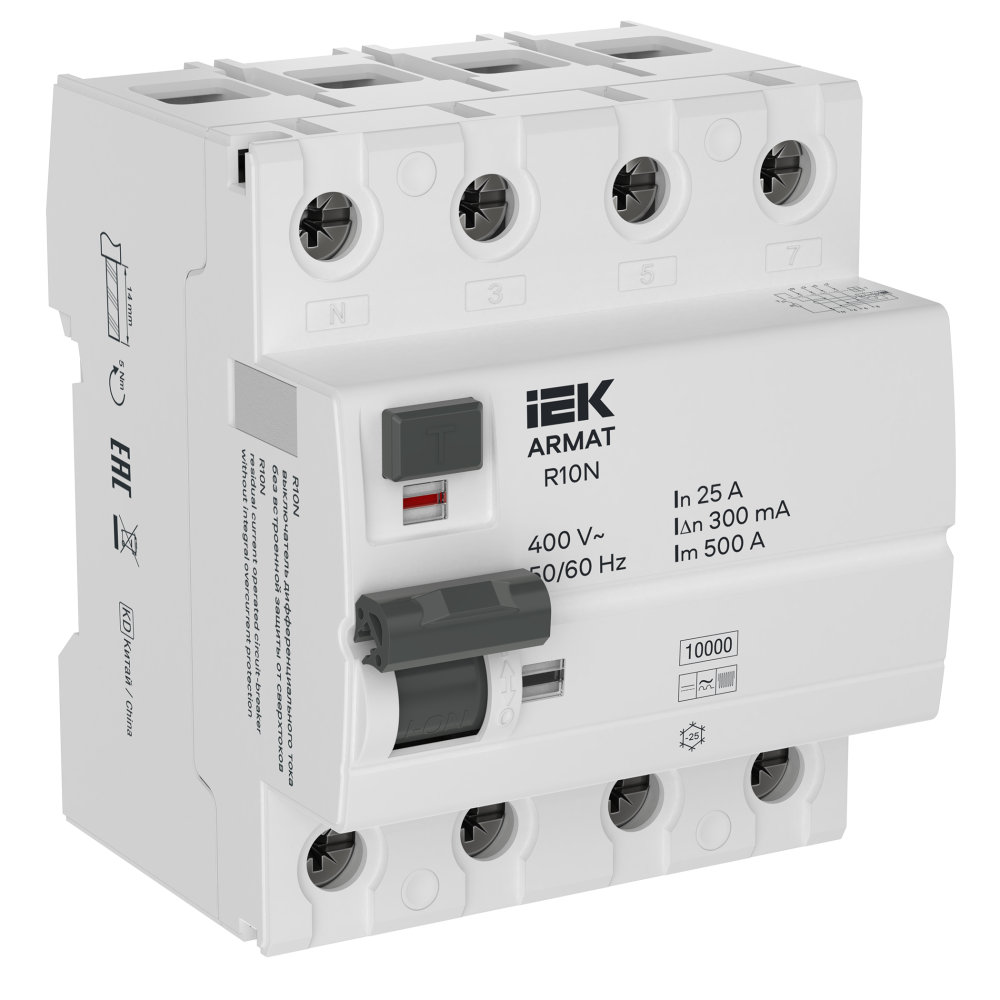 Выключатели дифференциального тока R10N типа B серии ARMAT предназначены для эксплуатации в однофазных или трёхфазных электрических сетях переменного тока напряжением до 400 В частотой 50/60 Гц. ВДТ типа В обеспечивают защиту от постоянной составляющей, переменной и пульсирующей составляющей и высокочастотной составляющей дифференциального тока. Дифференциальный ток с высокочастотной составляющей может возникать в оборудовании с преобразователями на полупроводниках. ВДТ с характеристиками срабатывания АС и А не могут обеспечить комплексную защиту в системах с преобразователями на полупроводниках, комплексная защита может быть обеспечена только с помощью ВДТ с характеристикой срабатывания типа В. Преобразователи на полупроводниках встречаются в медицинском оборудовании (различные виды томографов, рентгеновские аппараты и т.д.), зарядных станциях, фотоэлектрических преобразователях, источниках бесперебойного питания, преобразователях частоты.
