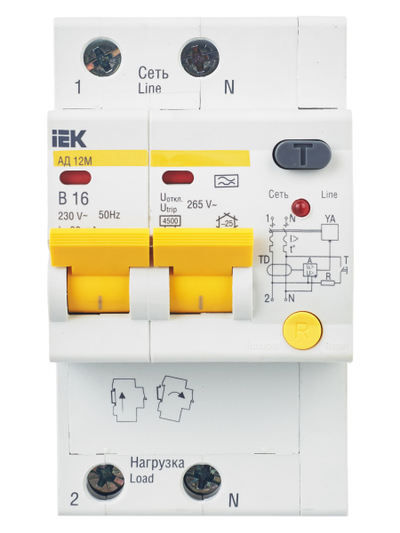 Быстродействующие защитные выключатели обеспечивают: в исполнении с уставками срабатывания 10 и 30 мА: - защиту людей от поражения электрическим током при прямом непреднамеренном прикосновении к токоведущим частям электрооборудования; в исполнении с уставками срабатывания 100 и 300 мА: – защиту от пожара из-за возгорания изоляции токоведущих частей; – защиту от перегрузки и короткого замыкания; – защиту от недопустимого повышения напряжения сети (АД12М). В изделиях предусмотрена индикация срабатывания от дифференциального тока, а для АД12М также светодиодная индикация включенного состояния. АД12М сохраняет работоспособность при снижении напряжения электрической сети до 110 В. В качестве коммутационных аппаратов в изделиях использованы выключатели автоматические ВА47-29 новой серии.