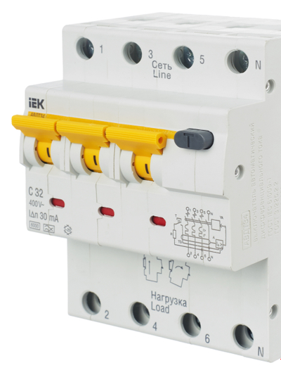 - Номинальный условный ток короткого замыкания 6000А позволяет устанавливать автоматические выключатели дифференциального тока АВДТ34 в качестве вводных автоматов защиты.
