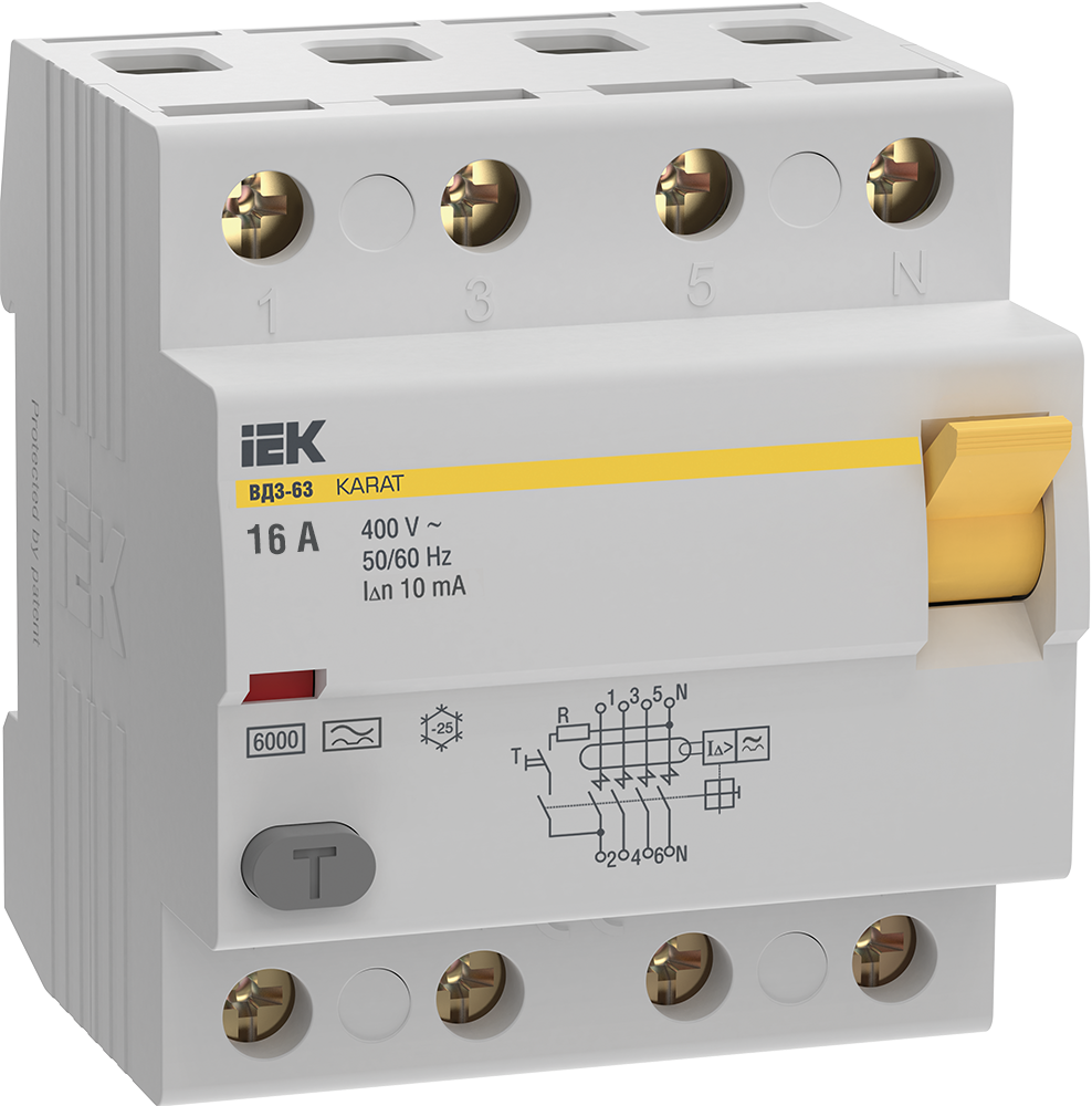 Выключатель дифференциального тока без встроенной защиты от сверхтоков типа ВД3-63 серии KARAT предназначен для автоматического выключения питания при повреждении изоляции в однофазных и трехфазных электрических цепях переменного тока номинальным напряжением до 400 В частотой 50 Гц. Выключатель электромеханического типа и является функционально не зависящим от напряжения сети и предназначен для эксплуатации в жилых, общественных и промышленных объектах, на строительных площадках и устанавливаются в низковольтные комплектные устройства ввода и распределения, со степенью защиты не ниже IP30. ВДТ не предназначен для отключения токов короткого замыкания и токов перегрузки.