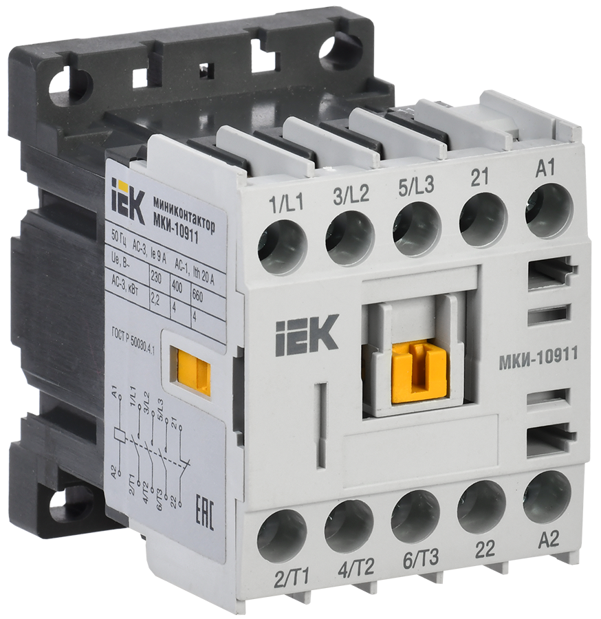 Миниконтакторы серии МКИ предназначены для использования в схемах управления различных нагрузок на напряжение переменного тока до 660 В частоты 50 Гц. Миниконтакторы позволяют дистанционно коммутировать силовые электрических сети в категориях применения АС3 (управление электродвигателями мощностью до 5 кВт) и АС1 (управление нагревательными приборами). Степень защиты, обеспечиваемая оболочкой миниконтакторов IP20 по ГОСТ 14254. Климатическое исполнение и категория применения контакторов УХЛ4 по ГОСТ 15150.