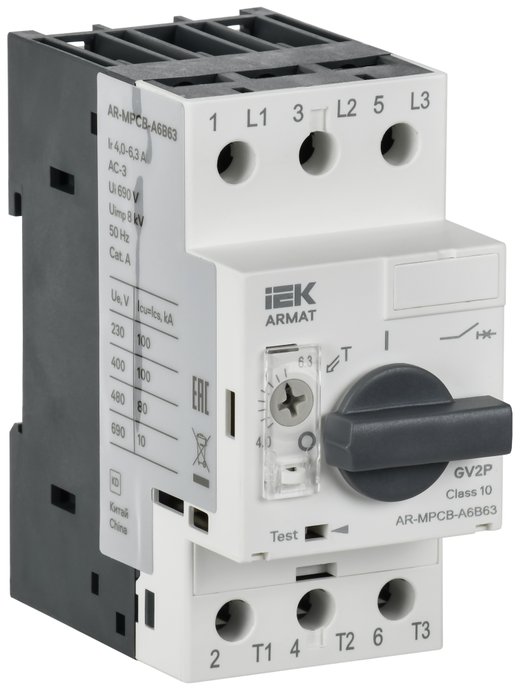 Автоматический выключатель защиты двигателя типа GV2P серии ARMAT предназначен для управления электроприводами с трехфазными асинхронными электродвигателями и для защиты от перегрузки, коротких замыканий и неполнофазных режимов работы. Выключатель защищает рабочие части электродвигателей от перегрузок во время запуска, поскольку пусковые токи при включении двигателя могут значительно превышать номинальные значения. Выключатель обеспечивает точную настройку и гибкую реакцию на пиковые пусковые токи. Эффективная защита от скачкового повышения тока при запуске электродвигателя способствует увеличению срока эксплуатации электроприборов. По своим конструктивным и техническим характеристикам автоматический выключатель защиты двигателя типа GV2P серии ARMAT соответствует требованиям ТР ТС 004/2011, ТР ЕАЭС 037/2016.