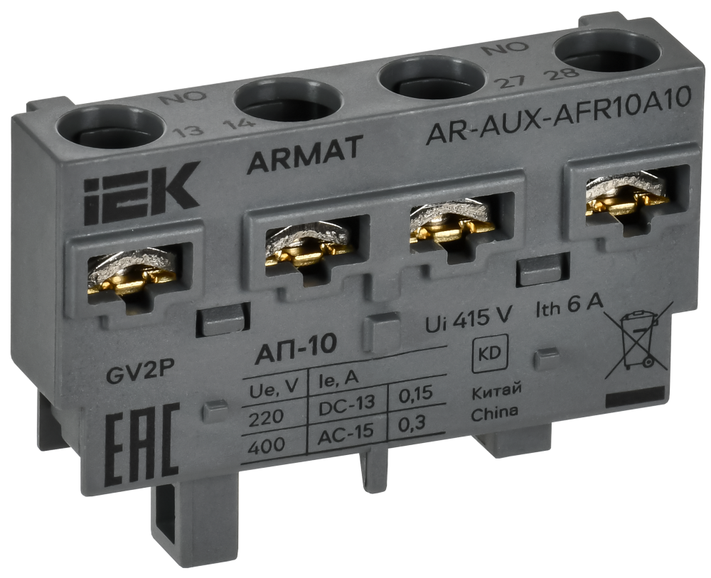- Безвинтовое крепление к автоматическим выключателям защиты двигателя типа GV2P серии ARMAT.
