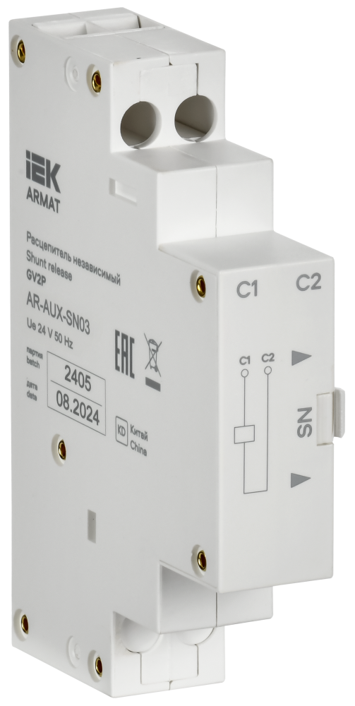 Расцепитель независимый для автоматического выключателя защиты двигателя серии ARMAT предназначен для дистанционного отключения выключателя. При срабатывании расцепителя его цепь питания размыкается встроенным контактом. Расцепитель соответствует требованиям ТР ТС 004/2011, ТР ЕАЭС 037/2016.