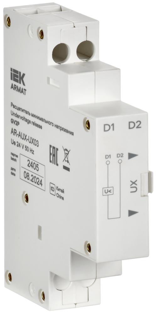 Расцепитель минимального напряжения для автоматического выключателя защиты двигателя серии ARMAT предназначен для отключения выключателя при недопустимом снижении напряжения сети. Расцепитель соответствует требованиям ТР ТС 004/2011, ТР ЕАЭС 037/2016.