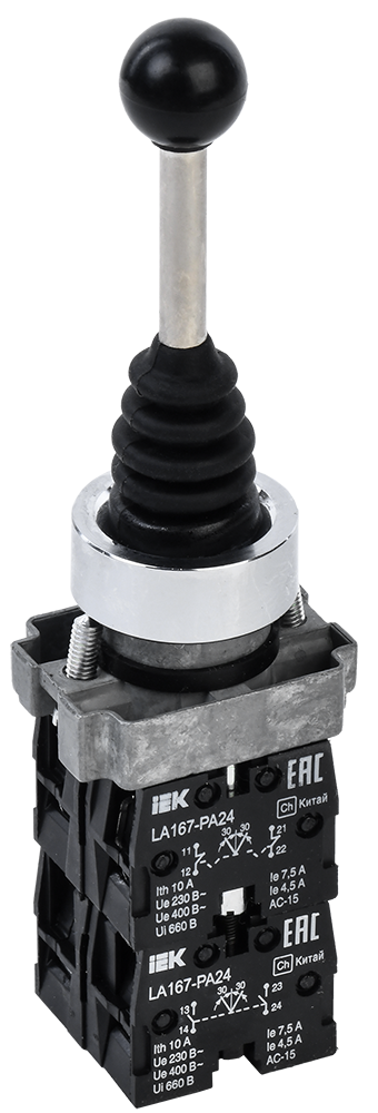 Джойстик предназначен для обеспечения интуитивно понятного управления оборудованием. Легкая установка в стандартные посадочные места 22 мм обеспечивает разнообразие применения устройства управления в различных вариациях оборудования управления и контроля.