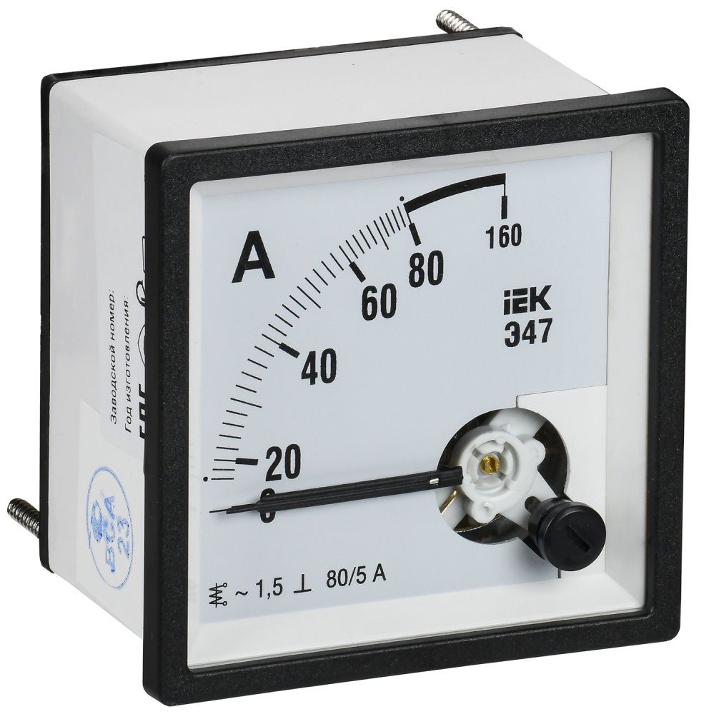 Применяются в низковольтных комплектных устройствах в распределительных электрических сетях жилых, коммерческих и производственных объектов. Амперметры Э47 - аналоговые электромагнитные электроизмерительные приборы - предназначены для измерения силы тока в электрических цепях переменного тока. Соответствуют требованиям ГОСТ 30012.1, 8711, 22261; ГОСТ Р 52319, 51522, 51317.3.2, 51317.3.3 и изготовлены по техническим условиям ТУ 4223-023-18461115-2008. Электроизмерительные приборы Э47 внесены в Государственный реестр средств измерений. Получен сертификат об утверждении типа средств измерений. Принцип действия: Амперметры Э47 относятся к приборам с электромагнитной системой. В составе имеют круглую катушку с помещенными внутрь подвижным и неподвижным сердечниками. При протекании тока через витки катушки, создается магнитное поле, намагничивающее оба сердечника. Вследствие чего, одноименные полюса сердечников отталкиваются, и подвижный сердечник поворачивает ось со стрелкой. Для защиты от негативного влияния внешних магнитных полей, катушка и сердечники защищены металлическим экраном.