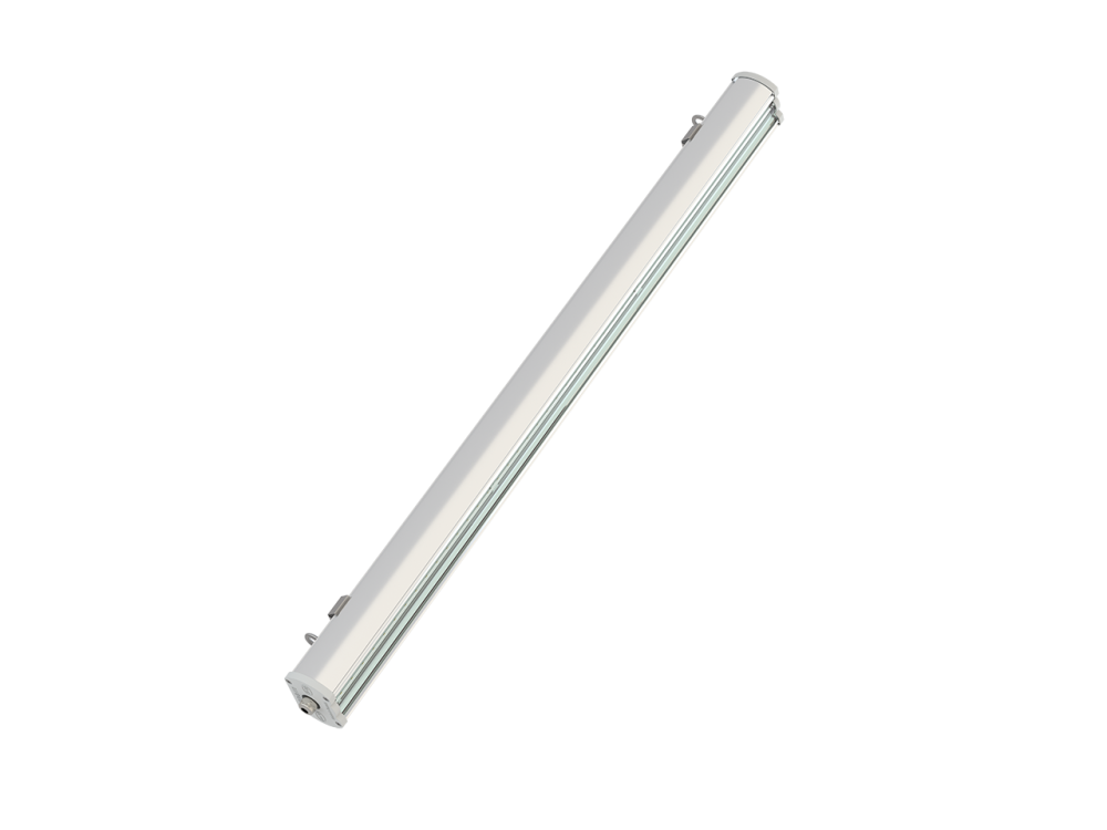 - Выполнен из экструдированного алюминиевого корпуса с литыми заглушками, что обеспечивает повышенную механическую прочность светильника.