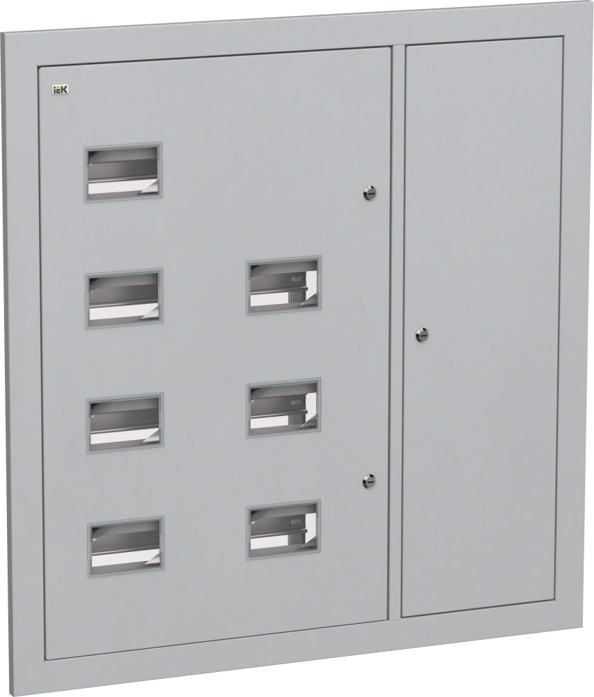Используется для сборки этажного распределительного щита на 7 квартир, предназначенного для приема и распределения электроэнергии в жилых и общественных зданиях, а также для защиты отходящих линий при перегрузках и коротких замыканиях. Сварной металлический корпус состоит из двух отсеков: вводно-учетный и распределительный объединены в один, второй – отсек слаботочного оборудования. В вводно-учетном, распределительном отсеках размещены DIN-рейки для крепления счетчиков (по количеству квартир), аппаратов групповых линий и рейка для установки шин N и РЕ. Отсек укомплектован оперативной панелью. Отсек слаботочного оборудования снабжен перфорированными профилями для прокладки теле- и радиосетей, телефонных линий, сетей охранной сигнализации, домофонов и т.п. Для обеспечения пожарной безопасности между слаботочным и силовым отсеками расположена разделительная перегородка.