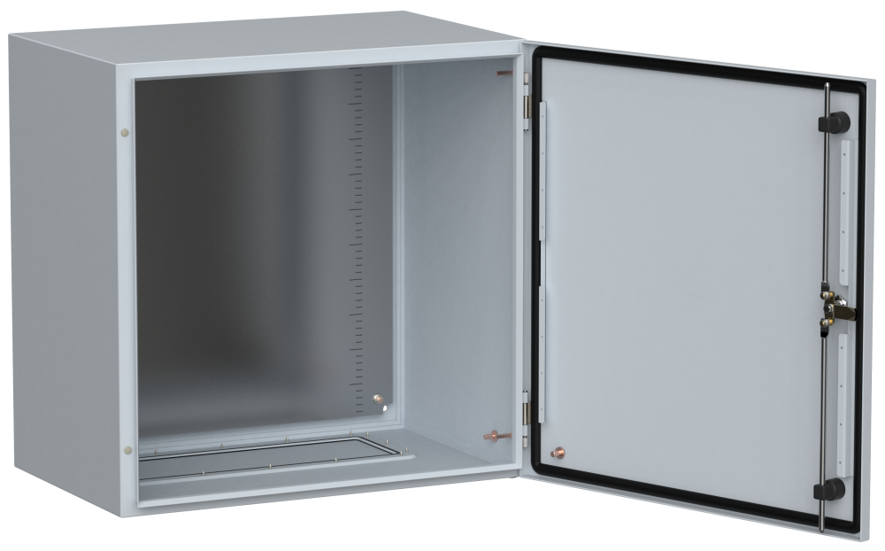 - Трехточечное запирание двери одним поворотом ключа (для корпусов высотой от 500 мм).
