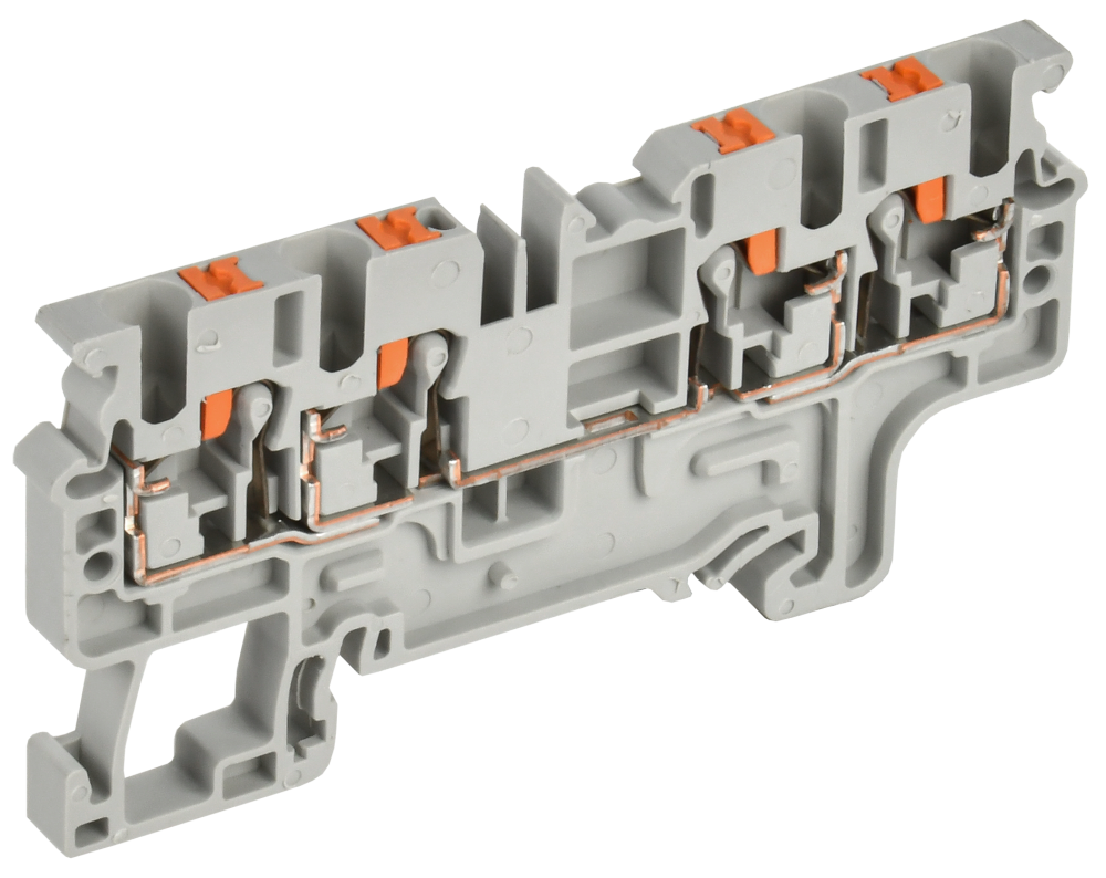 Клеммные колодки Push-In серии CP имеют специальную систему соединения, позволяющую подключать провода без использования инструментов. Кабель с наконечниками и одножильные провода можно напрямую подключить в зажим для выполнения соединений. Кнопка должна быть нажата для использования гибкого кабеля без наконечника для подключения. Уравнивание потенциала этих клеммных колодок может быть выполнено с помощью перемычек, доступных в различных конфигурациях полюсов. Клеммные колодки серии СР-MC 3-проводные и 4-проводные используются для устранения проблем с надежностью, возникающих при необходимости подключения нескольких проводов к одной клемме.