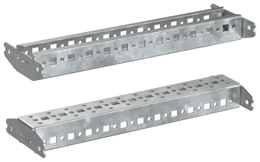 Рейка монтажная тип C представляет собой профиль с T-образным креплением на торцах. Предназначена для создания монтажных поверхностей между стойками.