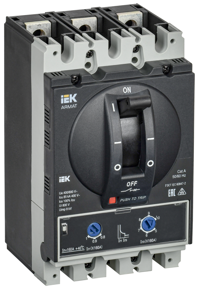 Автоматические выключатели в литом корпусе ARMAT применяются в различных типах низковольтных комплектных устройств – от распределительных щитов до ВРУ 1600 А. Входят в состав комплексных решений на базе продукции ARMAT IEK для создания систем энергораспределения зданий и сооружений, в том числе для индустриальных и высокотехнологических объектов. Благодаря высокой отключающей способности (до 150 кА) линейка автоматических выключателей в литом корпусе ARMAT идеальна для применения на энергоемких промышленных объектах. В комплексе с воздушными автоматическими выключателями ARMAT используются в НКУ до 6300 А. Вся линейка силовых автоматических выключателей ARMAT (воздушных и в литом корпусе) производится на современном, полностью автоматизированном оборудовании, с постоянным контролем качества. Электротехническая продукция IEK тщательно тестируется как в независимых лабораториях, так и в собственной лаборатории IEK GROUP в Москве. Мы уверены в высоком качестве и надежности силовых выключателей линейки ARMAT – вот почему гарантийный срок их эксплуатации составляет 5 лет!