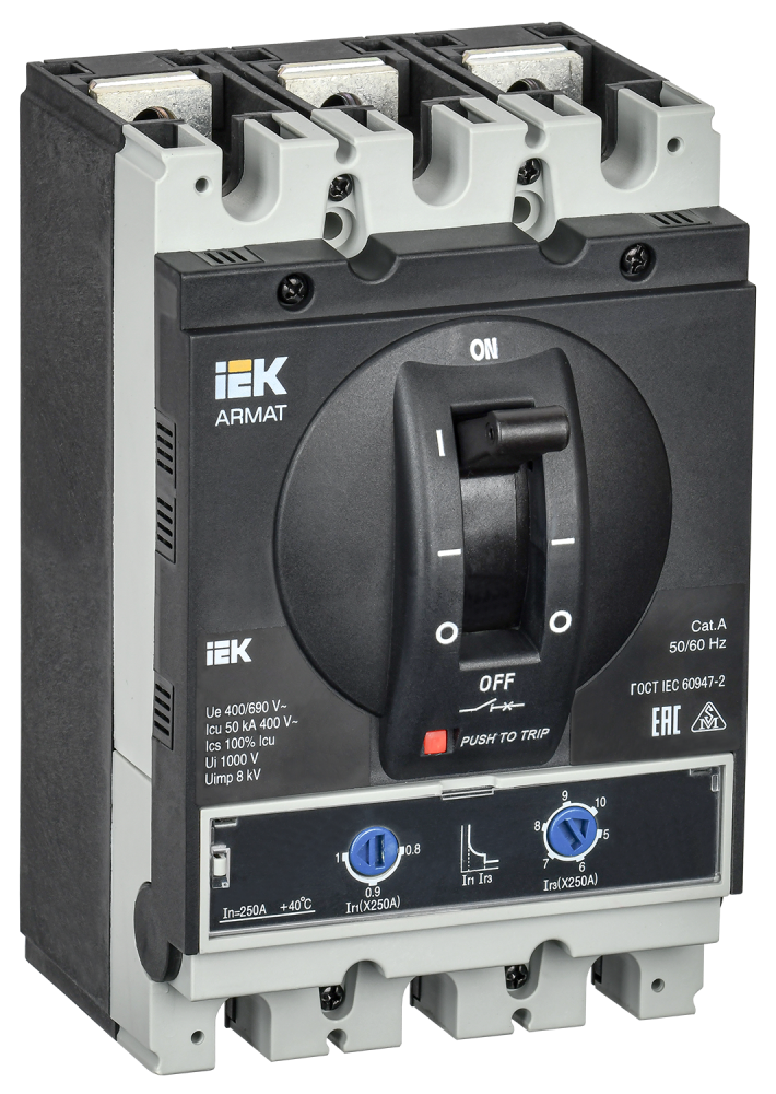Автоматические выключатели в литом корпусе ARMAT применяются в различных типах низковольтных комплектных устройств – от распределительных щитов до ВРУ 1600 А. Входят в состав комплексных решений на базе продукции ARMAT IEK для создания систем энергораспределения зданий и сооружений, в том числе для индустриальных и высокотехнологических объектов. Благодаря высокой отключающей способности (до 150 кА) линейка автоматических выключателей в литом корпусе ARMAT идеальна для применения на энергоемких промышленных объектах. В комплексе с воздушными автоматическими выключателями ARMAT используются в НКУ до 6300 А. Вся линейка силовых автоматических выключателей ARMAT (воздушных и в литом корпусе) производится на современном, полностью автоматизированном оборудовании, с постоянным контролем качества. Электротехническая продукция IEK тщательно тестируется как в независимых лабораториях, так и в собственной лаборатории IEK GROUP в Москве. Мы уверены в высоком качестве и надежности силовых выключателей линейки ARMAT – вот почему гарантийный срок их эксплуатации составляет 5 лет!