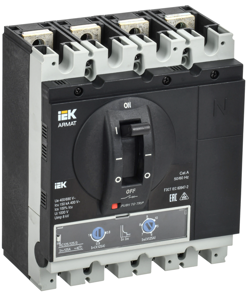 Автоматические выключатели в литом корпусе ARMAT применяются в различных типах низковольтных комплектных устройств – от распределительных щитов до ВРУ 1600 А. Входят в состав комплексных решений на базе продукции ARMAT IEK для создания систем энергораспределения зданий и сооружений, в том числе для индустриальных и высокотехнологических объектов. Благодаря высокой отключающей способности (до 150 кА) линейка автоматических выключателей в литом корпусе ARMAT идеальна для применения на энергоемких промышленных объектах. В комплексе с воздушными автоматическими выключателями ARMAT используются в НКУ до 6300 А. Вся линейка силовых автоматических выключателей ARMAT (воздушных и в литом корпусе) производится на современном, полностью автоматизированном оборудовании, с постоянным контролем качества. Электротехническая продукция IEK тщательно тестируется как в независимых лабораториях, так и в собственной лаборатории IEK GROUP в Москве. Мы уверены в высоком качестве и надежности силовых выключателей линейки ARMAT – вот почему гарантийный срок их эксплуатации составляет 5 лет!