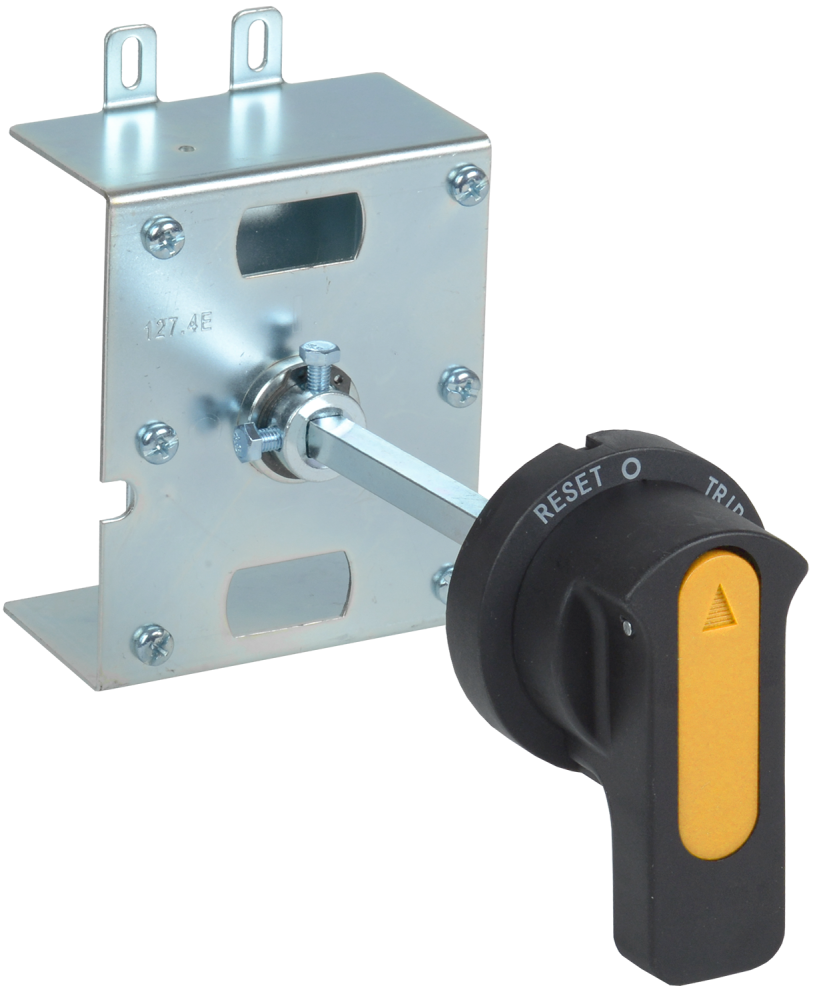 Ручной поворотный привод ПРПм предназначен для преобразования вращательного движения в поступательное для управления автоматическим выключателем ВА88 MASTER. Привод закрепляется на двери распределительного устройства для оперирования выключателем через дверь или непосредственно на выключателе.