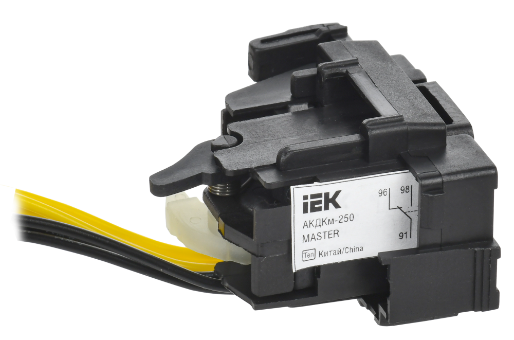 Контакт совмещенный АКДКм MASTER IEK совмещает функции дополнительного и аварийного контактов. Сигнализирует о положении силовых контактов и о срабатывании выключателя в аварийном режиме, а также при срабатывании независимого расцепителя, расцепителя минимального напряжения и в случае нажатия на кнопку «Тест».