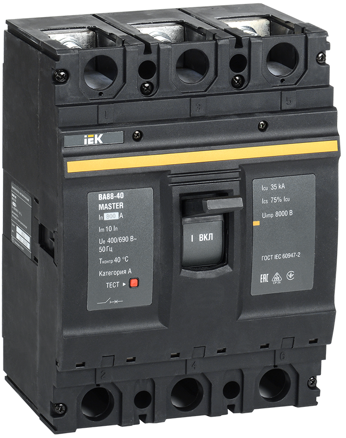 Автоматический выключатель в литом корпусе ВА88 MASTER предназначен для защиты электрических сетей от токов короткого замыкания, токов перегрузки, недопустимых снижений напряжения, а также для проведения тока в нормальном режиме. Автоматические выключатели производятся в 5 типоразмерах, оснащены термомагнитным расцепителем на токи от 16 до 800А и электронным расцепителем на токи от 125 до 800А. Рабочее напряжение 400/690 В. Конструкция автоматического выключателя предусматривает возможность самостоятельной установки дополнительных устройств на объекте заказчика.
