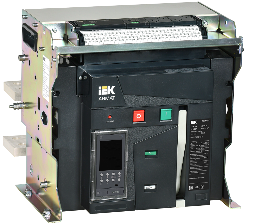 Воздушные автоматические выключатели (ACB) серии ARMAT предназначены для защиты сетей электроснабжения при коротких замыканиях и перегрузке, также предназначены для оперативных включений и выключений участков электрических цепей и рассчитаны для применения в электроустановках с номинальным рабочим напряжением до 690 В на номинальные токи от 630 до 6300А. Данные автоматические выключатели комплектуются электронными расцепителями, с различными комбинациями набора функциональных возможностей, в том числе возможностью коммуникации по протоколу Modbus, что, с учётом отключающей способности до 150 кА, позволяет применение ACB ARMAT на любых типах промышленных и гражданских объектов. Соответствуют ГОСТ Р 50030.2.