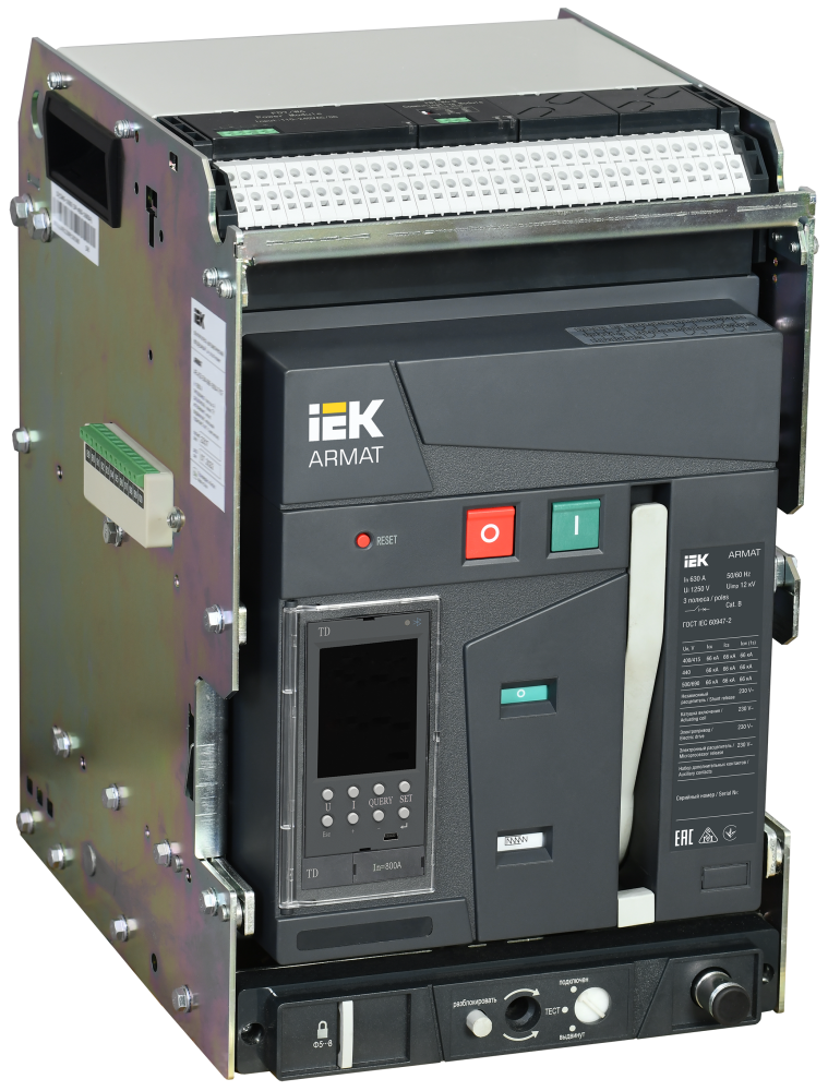 Воздушные автоматические выключатели (ACB) серии ARMAT предназначены для защиты сетей электроснабжения при коротких замыканиях и перегрузке, также предназначены для оперативных включений и выключений участков электрических цепей и рассчитаны для применения в электроустановках с номинальным рабочим напряжением до 690 В на номинальные токи от 630 до 6300А. Данные автоматические выключатели комплектуются электронными расцепителями, с различными комбинациями набора функциональных возможностей, в том числе возможностью коммуникации по протоколу Modbus, что, с учётом отключающей способности до 150 кА, позволяет применение ACB ARMAT на любых типах промышленных и гражданских объектов. Соответствуют ГОСТ Р 50030.2.