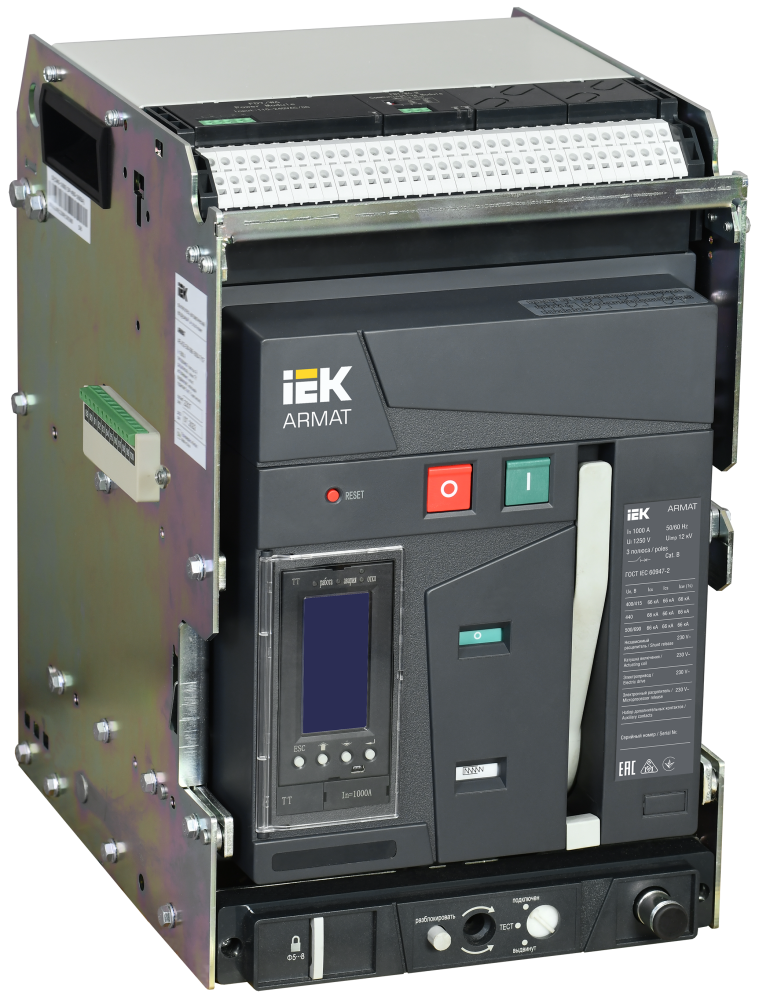 Воздушные автоматические выключатели (ACB) серии ARMAT предназначены для защиты сетей электроснабжения при коротких замыканиях и перегрузке, также предназначены для оперативных включений и выключений участков электрических цепей и рассчитаны для применения в электроустановках с номинальным рабочим напряжением до 690 В на номинальные токи от 630 до 6300А. Данные автоматические выключатели комплектуются электронными расцепителями, с различными комбинациями набора функциональных возможностей, в том числе возможностью коммуникации по протоколу Modbus, что, с учётом отключающей способности до 150 кА, позволяет применение ACB ARMAT на любых типах промышленных и гражданских объектов. Соответствуют ГОСТ Р 50030.2.