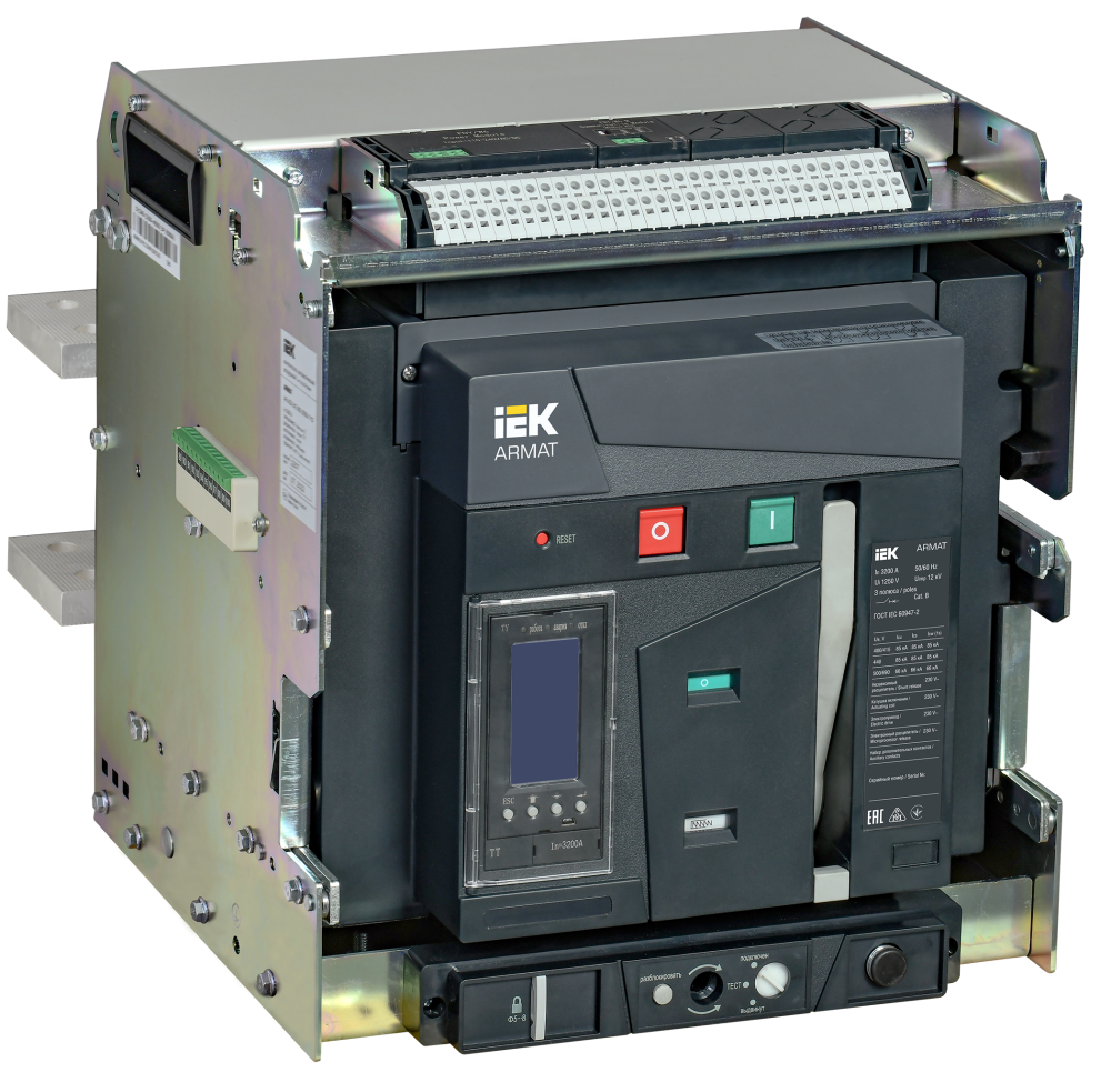 Воздушные автоматические выключатели (ACB) серии ARMAT предназначены для защиты сетей электроснабжения при коротких замыканиях и перегрузке, также предназначены для оперативных включений и выключений участков электрических цепей и рассчитаны для применения в электроустановках с номинальным рабочим напряжением до 690 В на номинальные токи от 630 до 6300А. Данные автоматические выключатели комплектуются электронными расцепителями, с различными комбинациями набора функциональных возможностей, в том числе возможностью коммуникации по протоколу Modbus, что, с учётом отключающей способности до 150 кА, позволяет применение ACB ARMAT на любых типах промышленных и гражданских объектов. Соответствуют ГОСТ Р 50030.2.