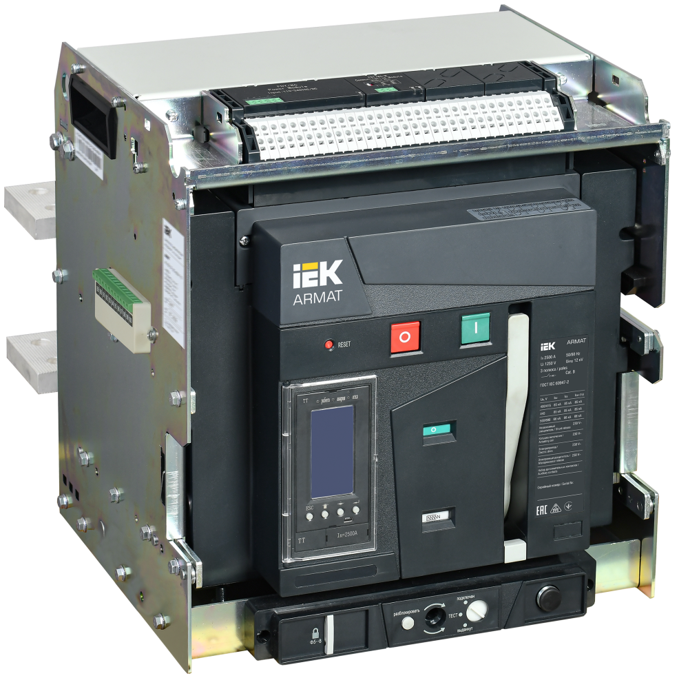Воздушные автоматические выключатели (ACB) серии ARMAT предназначены для защиты сетей электроснабжения при коротких замыканиях и перегрузке, также предназначены для оперативных включений и выключений участков электрических цепей и рассчитаны для применения в электроустановках с номинальным рабочим напряжением до 690 В на номинальные токи от 630 до 6300А. Данные автоматические выключатели комплектуются электронными расцепителями, с различными комбинациями набора функциональных возможностей, в том числе возможностью коммуникации по протоколу Modbus, что, с учётом отключающей способности до 150 кА, позволяет применение ACB ARMAT на любых типах промышленных и гражданских объектов. Соответствуют ГОСТ Р 50030.2.