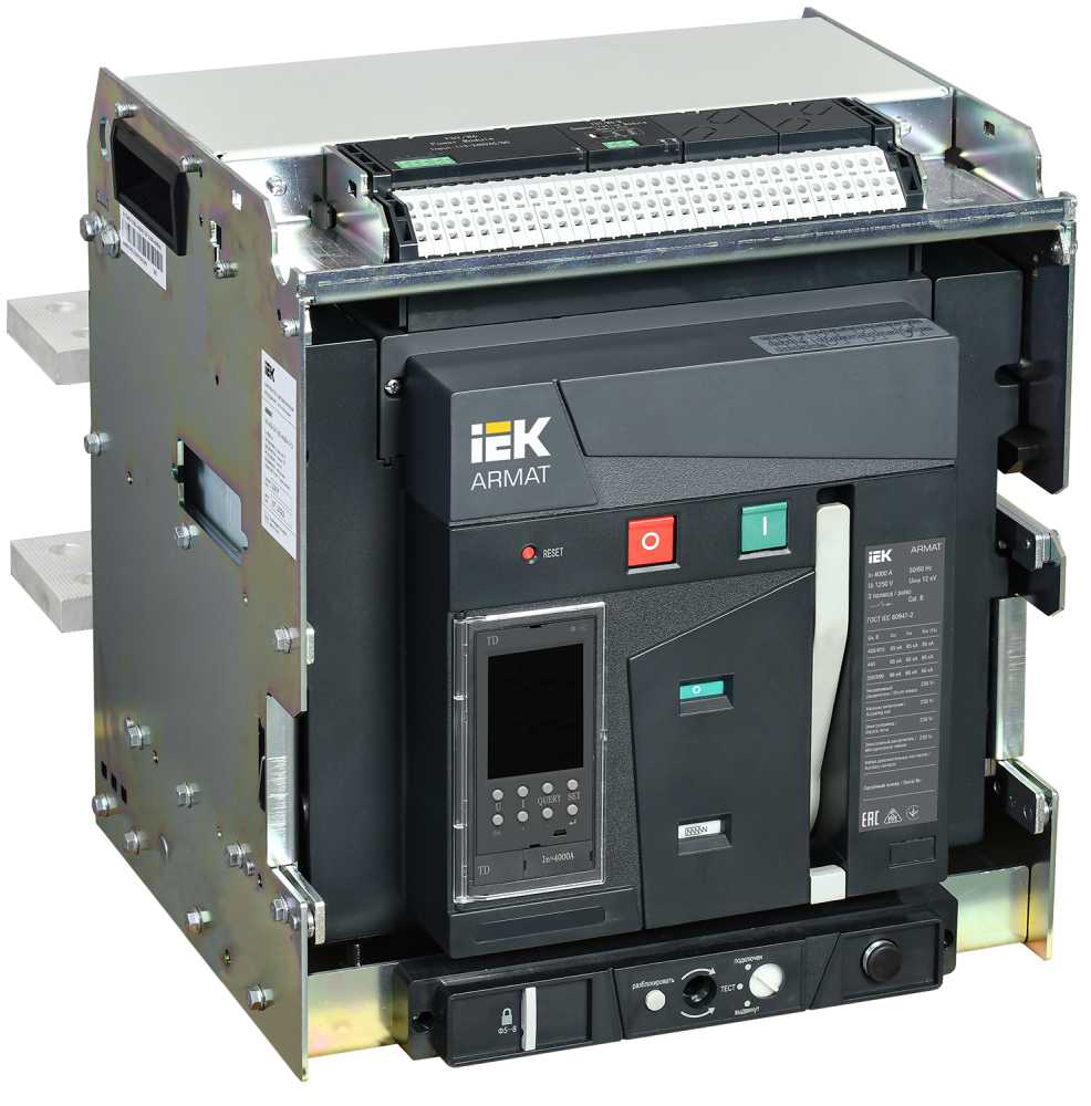 Воздушные автоматические выключатели (ACB) серии ARMAT предназначены для защиты сетей электроснабжения при коротких замыканиях и перегрузке, также предназначены для оперативных включений и выключений участков электрических цепей и рассчитаны для применения в электроустановках с номинальным рабочим напряжением до 690 В на номинальные токи от 630 до 6300А. Данные автоматические выключатели комплектуются электронными расцепителями, с различными комбинациями набора функциональных возможностей, в том числе возможностью коммуникации по протоколу Modbus, что, с учётом отключающей способности до 150 кА, позволяет применение ACB ARMAT на любых типах промышленных и гражданских объектов. Соответствуют ГОСТ Р 50030.2.