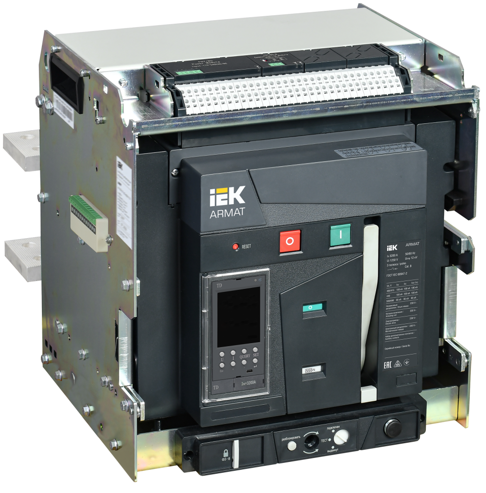Воздушные автоматические выключатели (ACB) серии ARMAT предназначены для защиты сетей электроснабжения при коротких замыканиях и перегрузке, также предназначены для оперативных включений и выключений участков электрических цепей и рассчитаны для применения в электроустановках с номинальным рабочим напряжением до 690 В на номинальные токи от 630 до 6300А. Данные автоматические выключатели комплектуются электронными расцепителями, с различными комбинациями набора функциональных возможностей, в том числе возможностью коммуникации по протоколу Modbus, что, с учётом отключающей способности до 150 кА, позволяет применение ACB ARMAT на любых типах промышленных и гражданских объектов. Соответствуют ГОСТ Р 50030.2.