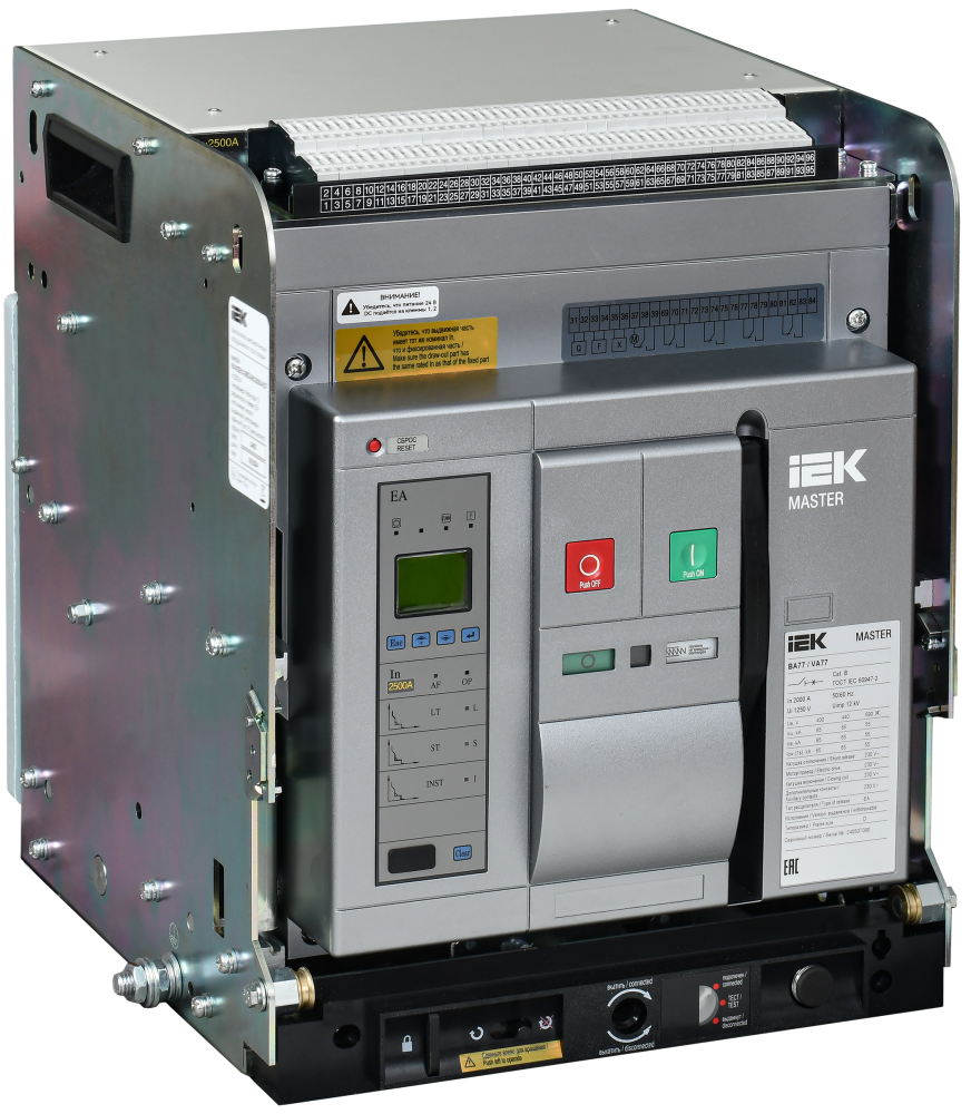Воздушные автоматические выключатели серии MASTER IEK предназначены для защиты сетей низкого напряжения от коротких замыканий и перегрузок. Автоматические выключатели данной серии обладают оптимальным набором функций, для применения их на объектах жилищного, социального, коммерческого и дорожного строительства, а также энергетики и сельского хозяйства. Воздушные автоматические выключатели серии MASTER IEK поставляются укомплектованными набором аксессуаров для их полноценного применения в состав НКУ: мотор привод 230В, реле включения и отключения (с удержанием) 230В, контакт положения в корзине, набор из 4х перекидных контактов, аварийный контакт. В комплект автоматического выключателя также входит электронный контроллер и, в случае выдвижного исполнения база выдвижного исполнения.
