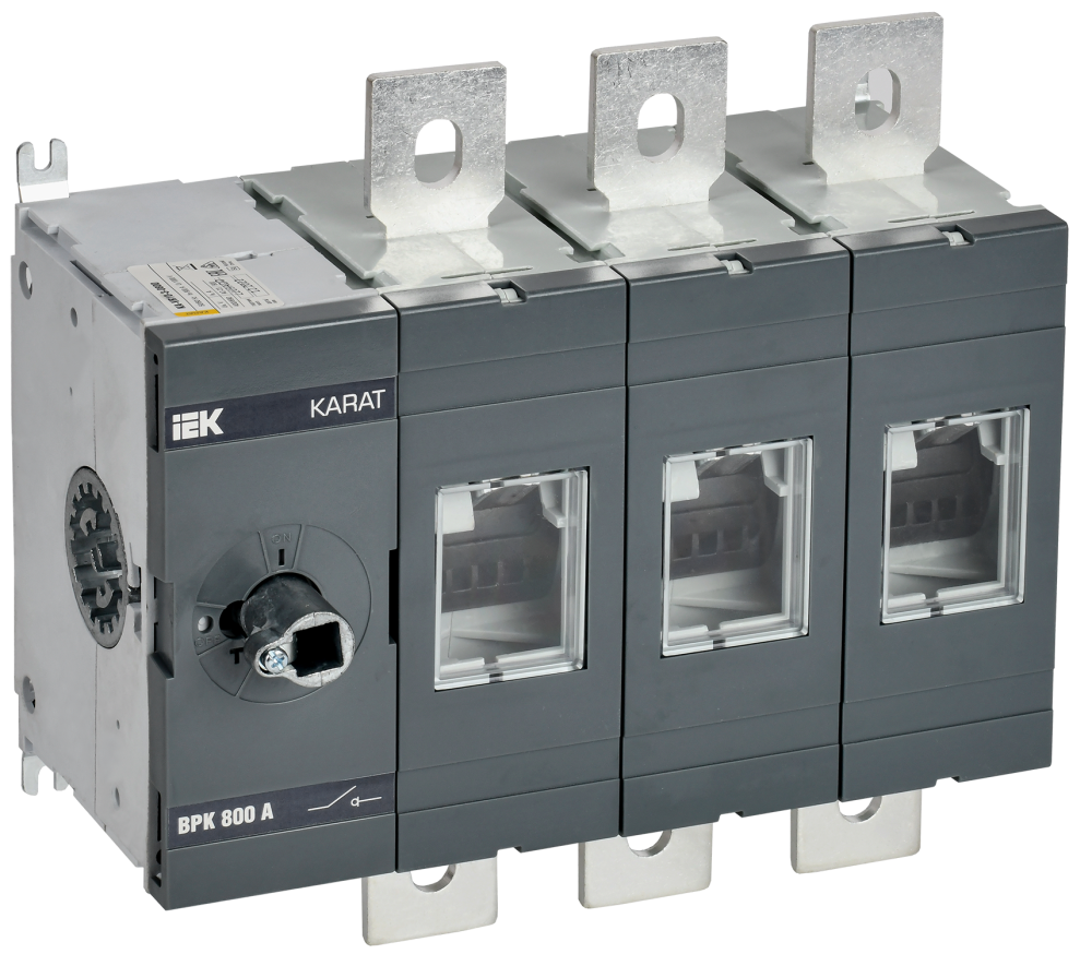 Выключатели-разъединители KARAT IEK с номинальным током до 1600А (прямое исполнение) и до 800А (реверсивное исполнение) применяются в промышленности и нефтегазовой отрасли, энергетике, коммерческой недвижимости, инфраструктуре и сельском хозяйстве. Используются для оперативных включений и отключений участков электрических цепей. Базовые модели поставляются с 3 силовыми полюсами.