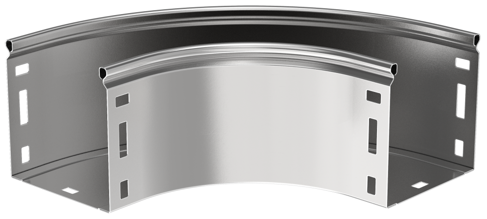 Поворот на 90° плавный предназначен для организации горизонтального поворота кабельной трассы на 90°. Крышка аксессуара в комплект не входит. Аксессуар изготовлен из стали горячего цинкования методом Сендзимира (защитный слой цинка не менее 10 мкм).