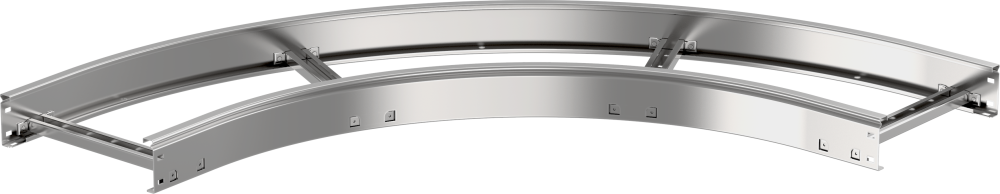 Применяется для организации поворота кабельной трассы на 90° в горизонтальной плоскости с радиусом поворота 600 мм. Изготавливается из рулонной холоднокатанной стали предварительно оцинкованной по методу Сендзимира (ГОСТ 14918-2020).