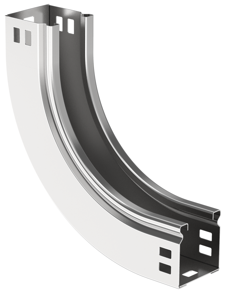 Поворот на 90° вертикальный внутренний плавный предназначен для организации вертикального внутреннего поворота кабельной трассы на 90°. Крышка аксессуара в комплект не входит. Аксессуар изготовлен из стали горячего цинкования методом Сендзимира (защитный слой цинка не менее 10 мкм).